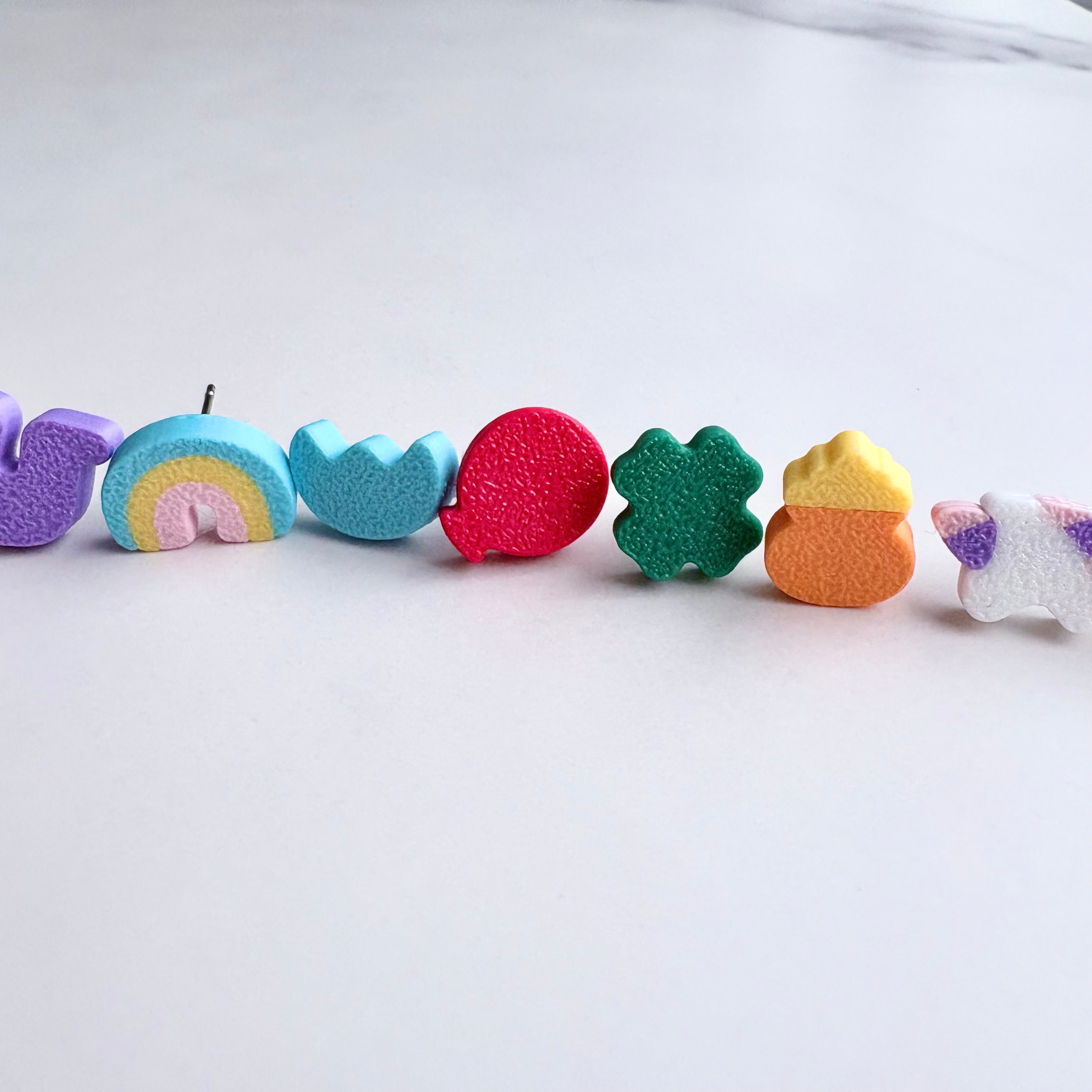 Lucky Marshmallow Stud Earrings Set (9 studs, no duplicates)