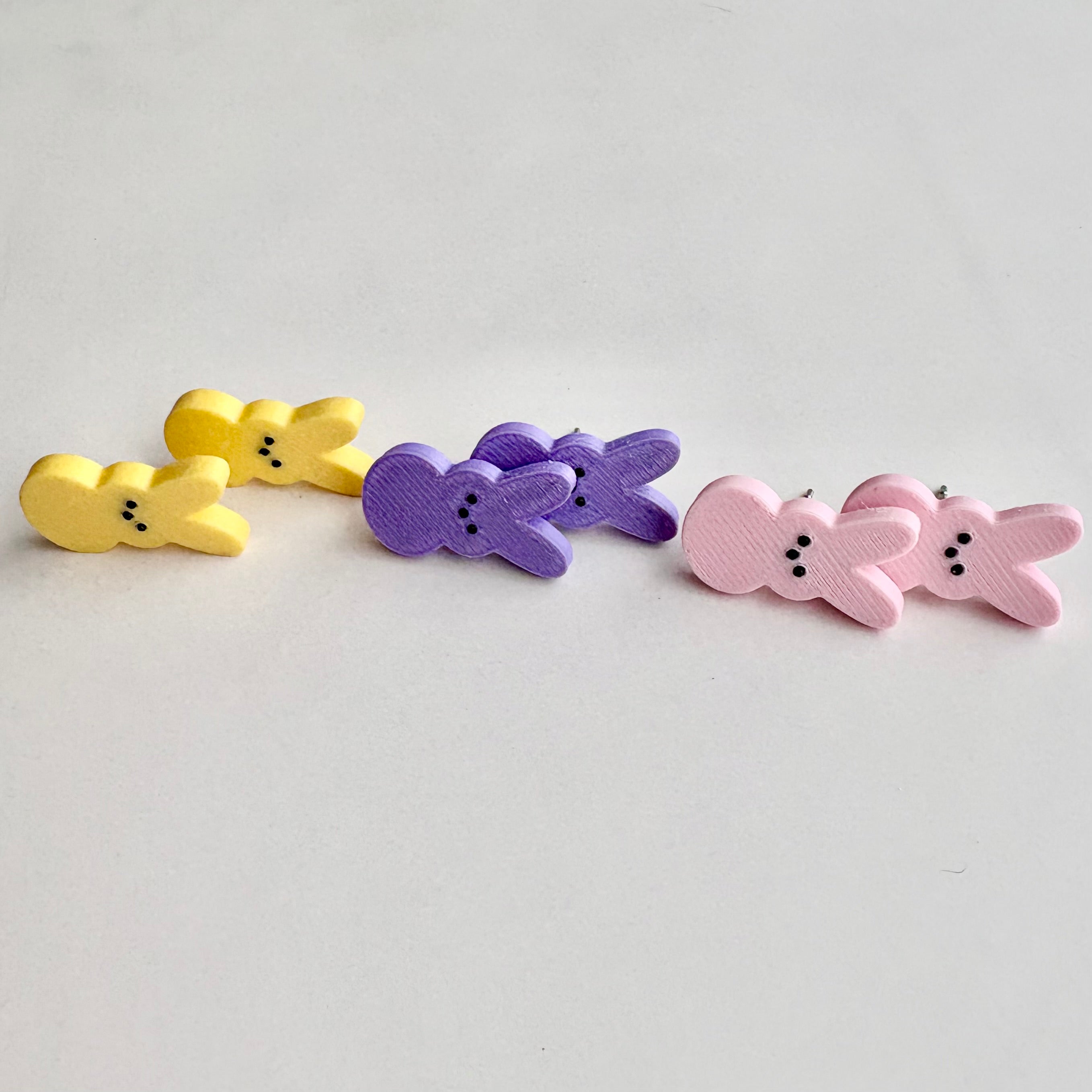🙌 Materials: PLA (biodegradable plastic), resin, hypoallergenic stainless steel posts with metal or rubber stoppers