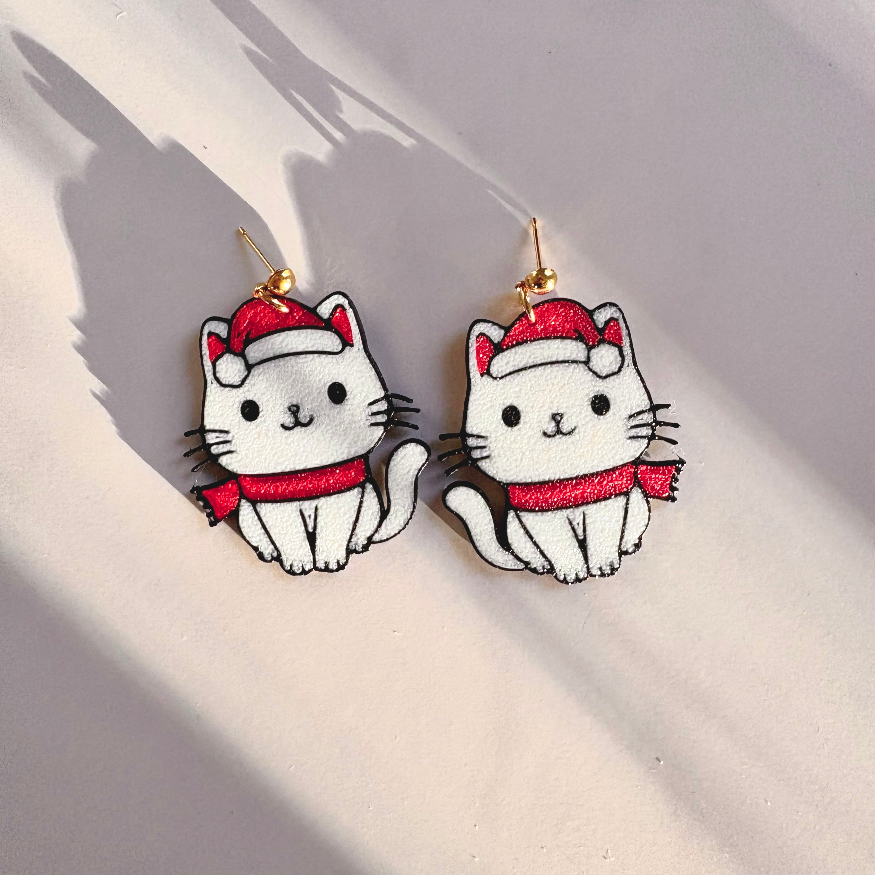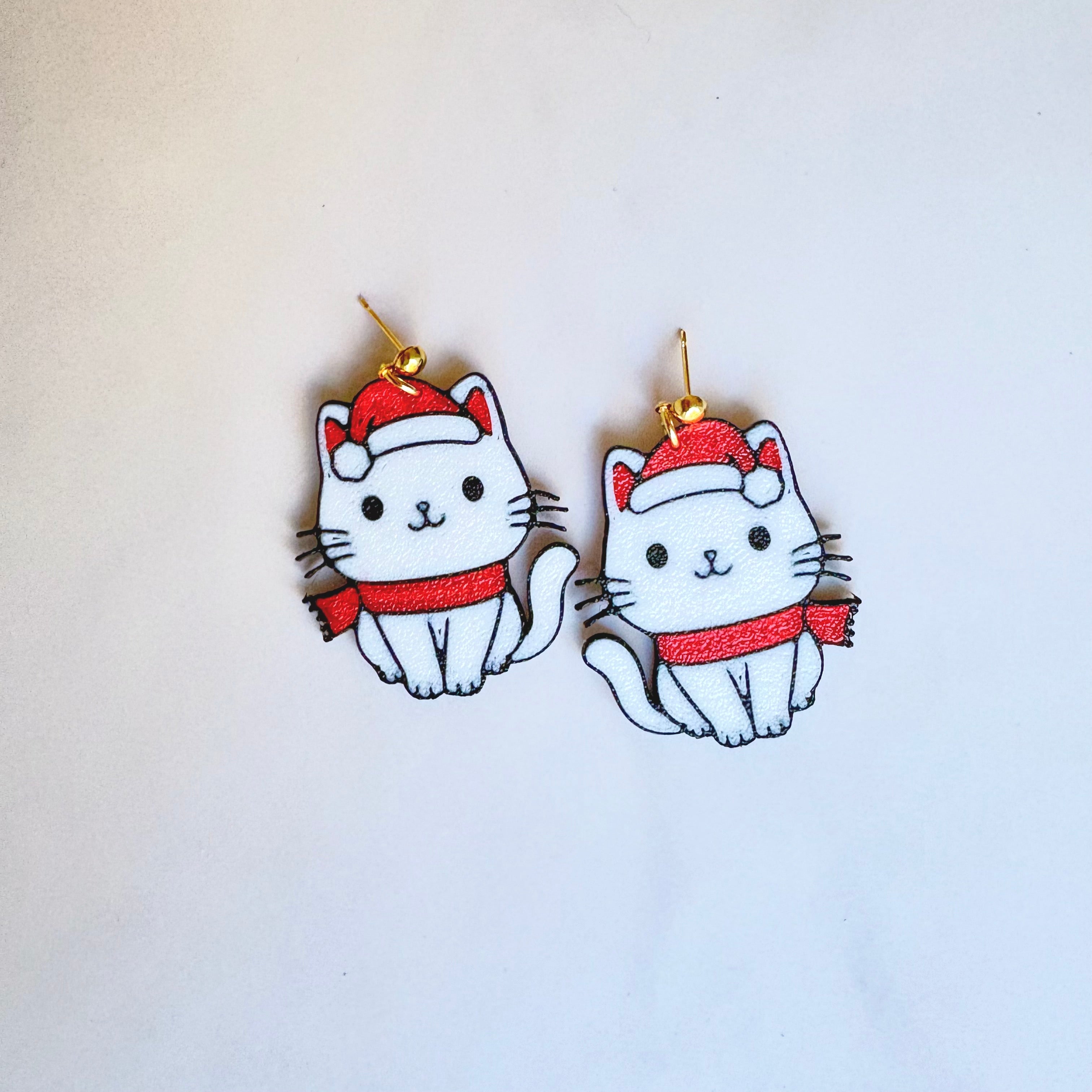 Winter Cat Christmas Drop Earrings